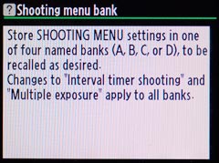 Menus are mainly navigated using the “Multi-selector” - the four-way circular control on the back of the camera with a centre button. However, it’s also possible to use the command and sub-command dials (front and rear control wheels); for example the rear control scrolls up and down, the front control moves from left-to-right (from tab, to menu item, etc). This is typical Nikon attention to detail, and it’s up to you which method you prefer.